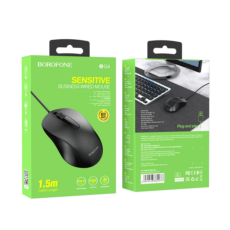 ماوس BG4 بهصورت سیمی (USB) طراحی شده و اتصال پایداری را بدون نیاز به باتری یا شارژ فراهم میکند. سنسور نوری دقیق آن حرکت روان و پاسخگویی سریع را ممکن میسازد و دقت کافی برای انجام کارهای اداری، آموزشی و حتی طراحی ساده در اختیار کاربر قرار میدهد. علاوه بر این، کابل مقاوم و سبک بودن بدنه، دوام و سهولت استفاده را افزایش داده است.