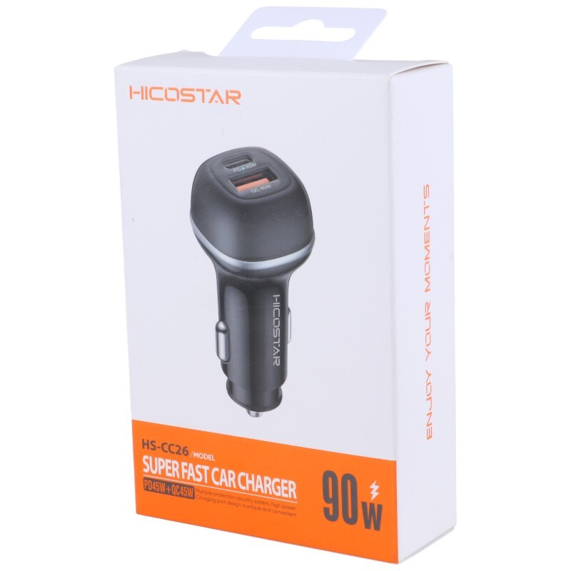 شارژر فندکی فست شارژ 90W هایکو استار HICOSTAR مدل HS-CC26