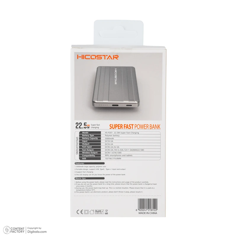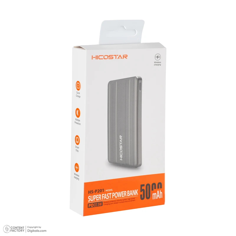 پاوربانک مگ سیف هایکو استار HICOSTAR وات22.5W مدل HS-P201 ظرفیت 5000 میلی آمپر ساعت