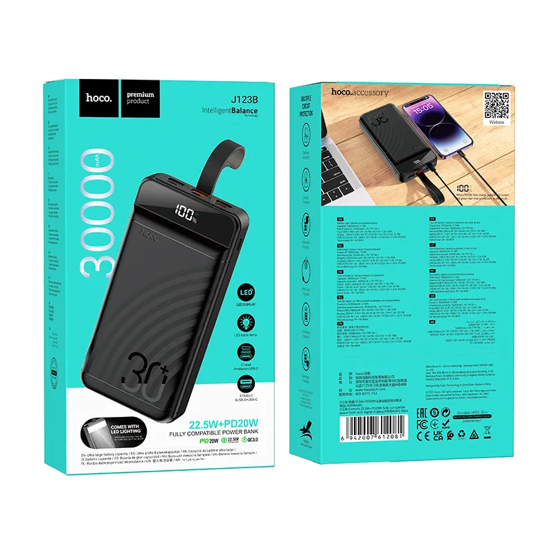 پاور بانک هوکو مدل J123B 22.5W 30000 یکی از محصولات برتر در دسته پاور بانکها است که با ظرفیت بالای ۳۰,۰۰۰ میلیآمپر ساعت و توان شارژ سریع ۲۲.۵ وات، توانایی شارژ دستگاههای مختلف از جمله گوشیهای هوشمند، تبلتها، دوربینها و سایر لوازم الکترونیکی را دارد. این پاور بانک به دلیل طراحی مناسب، کاربری آسان و عملکرد عالی، یک انتخاب ایدهآل برای سفرها و استفاده روزمره محسوب میشود.