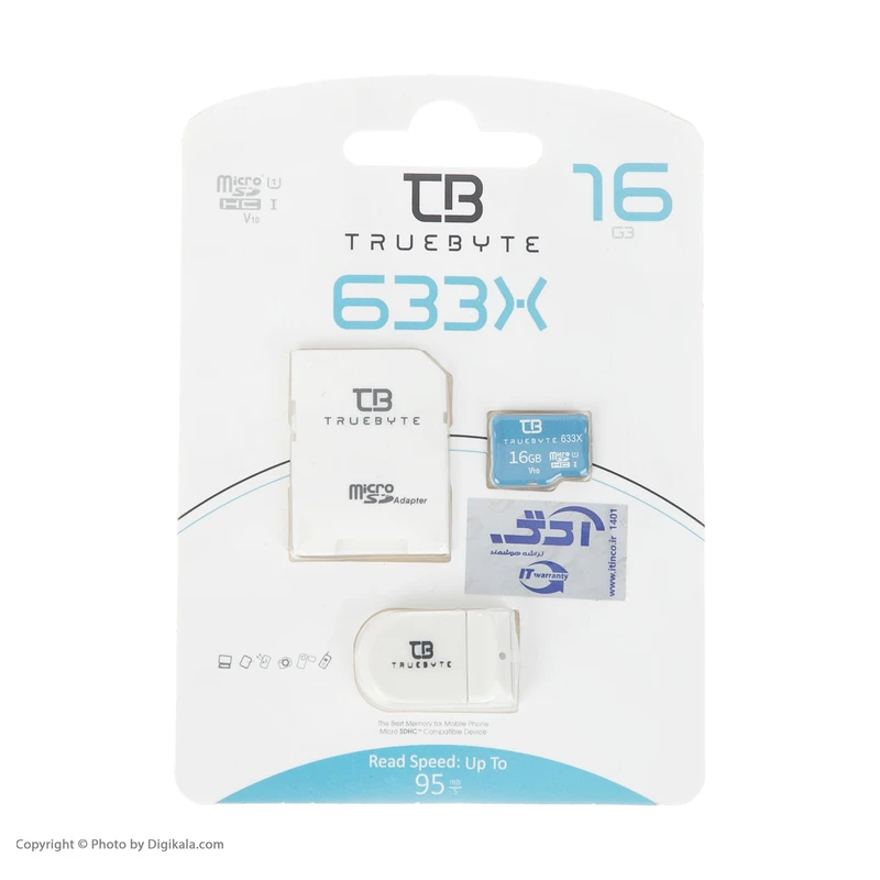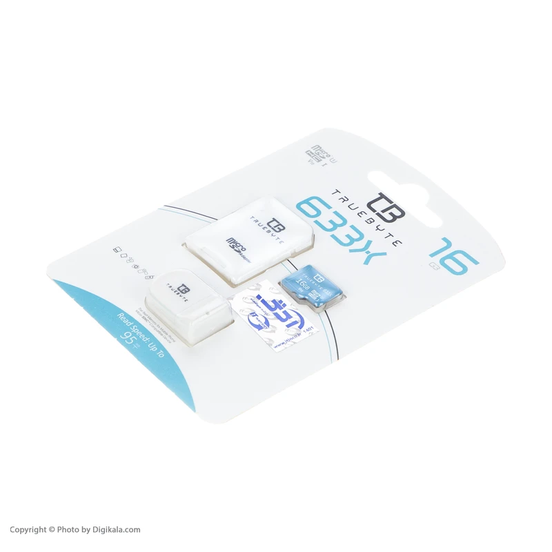 کارت حافظه MicroSDHC تروبایت مدل 633X-V10 کلاس 10 استاندارد UHS-I U1 سرعت 95MBPS ظرفیت 16 گیگابایت به همراه آداپتور