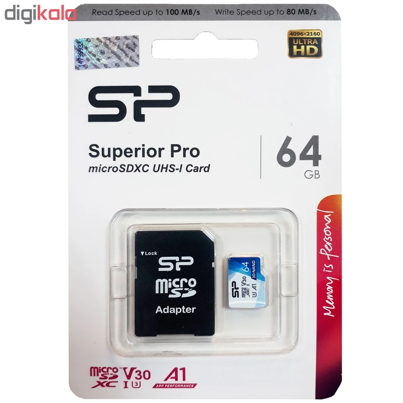 کارت حافظه microSDXC سیلیکون پاور مدل Superior Pro کلاس 10 استاندارد UHS-I U3 سرعت 100MBps ظرفیت 64 گیگابایت