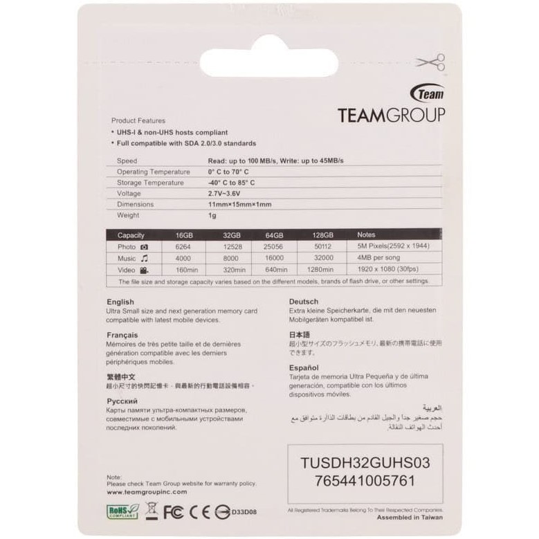 رم میکرو تیم گروپ TeamGroup مدل U1 C10 100MB/s ظرفیت 32GB