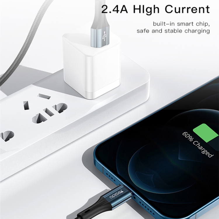 کابل شارژ ایسیدو Yesido مدل CA94 با سری USB به Lightning طول 2 متر 2.4 آمپر